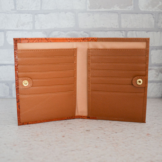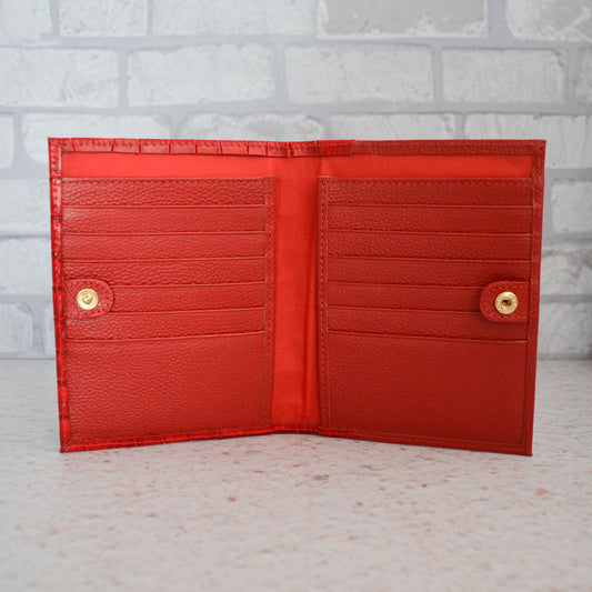 Ahorra $10.100Porta pasaporte orquídea rojo de cuero para mujer